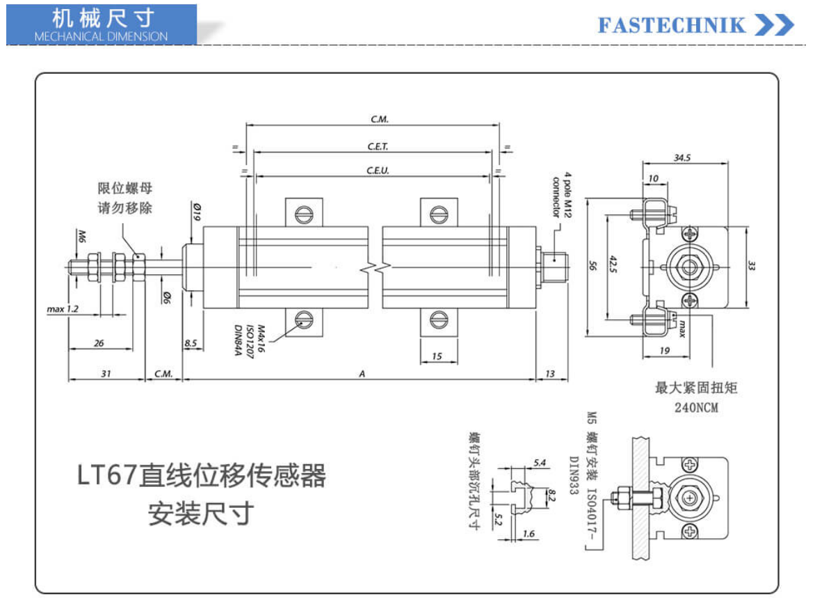 PVO廣州南創電子科技有限公司杰佛倫gefran電子尺產品尺寸圖:PVO廣州南創電子科技有限公司