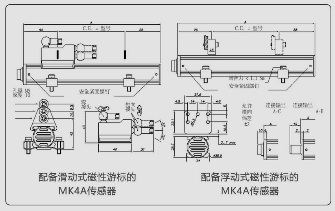 sIx廣州南創電子科技有限公司杰佛倫gefran電子尺MK4-A-A-1000-N MK4-A-B-150-E尺寸圖:sIx廣州南創電子科技有限公司