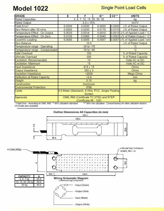 美國Tedea-Huntleigh 1022-200kg稱重傳感器技術參數圖: