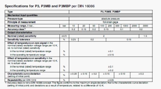 德國HBM p3mb/1000bar稱重傳感器技術參數: