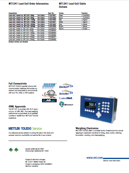以上是瑞士梅特勒托利多MT1241-30kg稱重傳感器的產品資料,如需了解詳細信息,請登錄網址:http://www.gcqdsjzx.com,找銷售三部找高工程師。