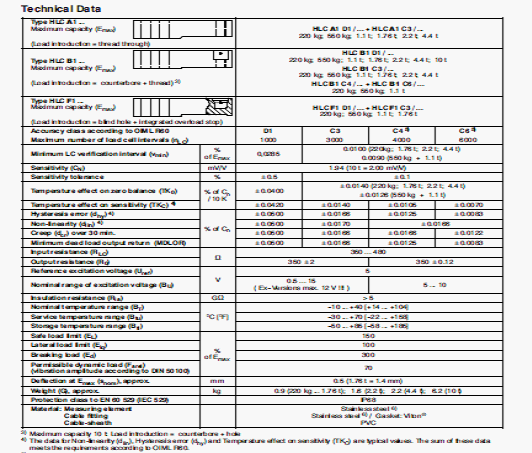 德國HBM HLCA1C3/220kg稱重傳感器技術參數圖:y6e廣州南創電子科技有限公司