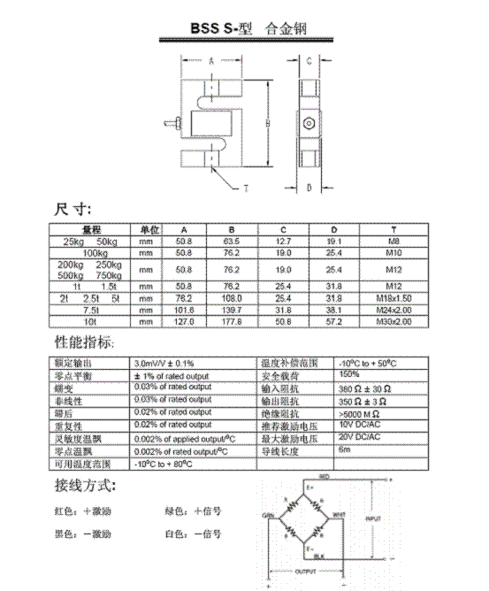 美國Transcell BSS-750kg稱重傳感器技術參數圖: