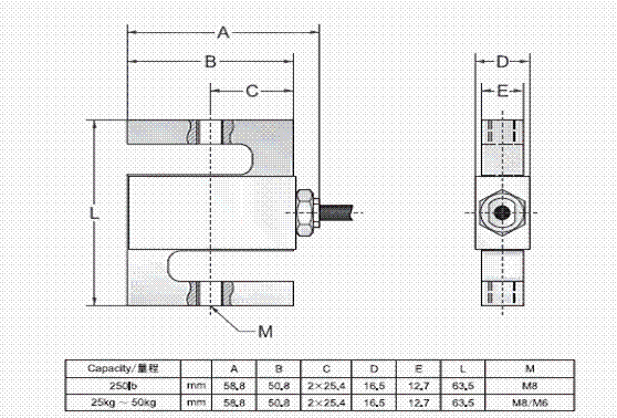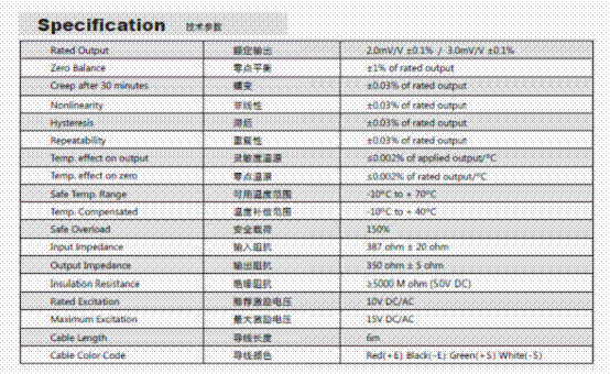 美國Transcell BSA-50kg稱重傳感器技術參數圖: