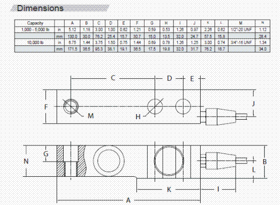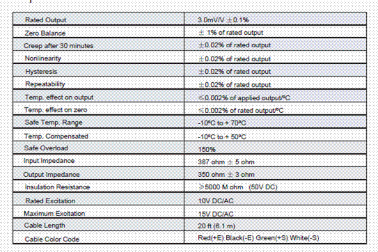 美國Transcell SBSB-2T稱重傳感器技術參數圖: