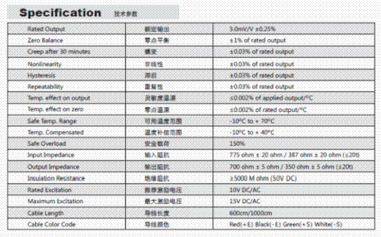 美國Transcell DBSL-3T稱重傳感器技術參數(shù)圖: