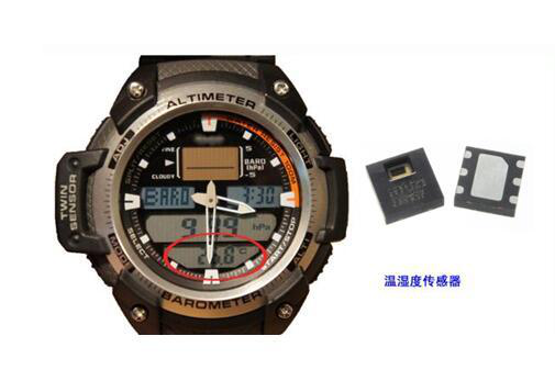 溫濕度傳感器集成在智能手表中,用以實時顯示戶外溫度和濕度值,便于用戶了解氣候狀態。目前,阻礙智能手表廠商采用溫濕度傳感器的主要原因,可能并非來自傳感器本身。怎樣使其轉化為手表用戶的有利信息成為應用的關鍵。在日本,針對溫濕度傳感器的應用開發已經走在了前列。