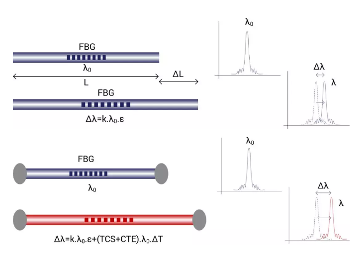 傳感器之間的布拉格波長距離定義了兩個傳感器的最大測量范圍,因為如果信號重疊,測量將受到影響。每個傳感器的使用波長范圍取決于其測量范圍,溫度工作范圍,以及傳感器靈敏度、傳感器交叉靈敏度和材料熱膨脹引起的熱感應波長偏移。