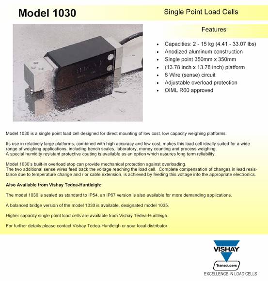 描述:1022是為低成本稱重秤設計的單點式傳感器。其緊湊的外形尺寸以及較低的成本適用于零售秤、計價秤和計數秤。