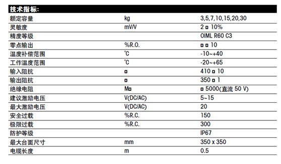 托利多MT1022-5kg稱重傳感器,MT1022-5kg,MT1022-5kg稱重傳感器各項技術指標: