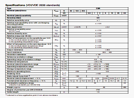 德國HBM C9B/1KN稱重傳感器技術(shù)參數(shù)圖: