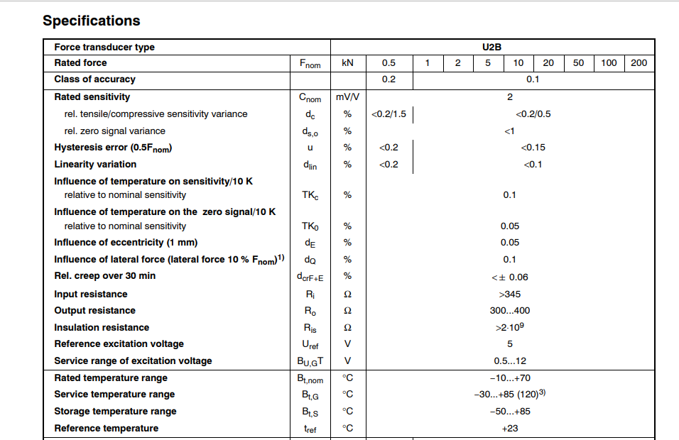 德國HBM力傳感器U2B/50kN產品技術參數:owo廣州南創電子科技有限公司