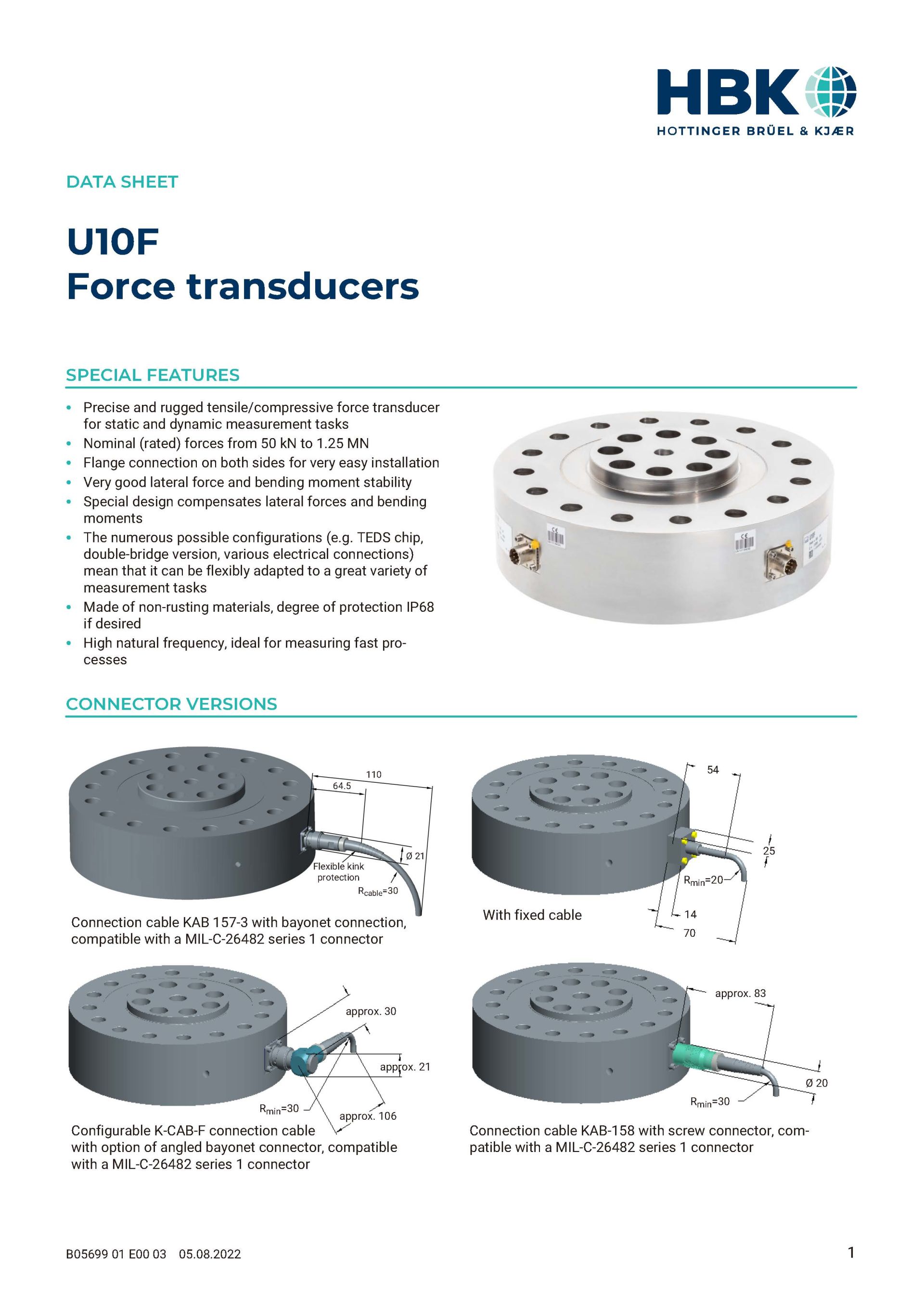 S8P廣州南創電子科技有限公司德國HBM u10f傳感器全部量程型號:S8P廣州南創電子科技有限公司U10F/50KN;U10F/125KN;U10F/250KN ;U10F/500KN;U10F/1.25MN