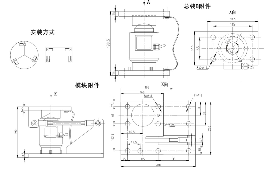 寧波柯力稱重傳感器ZSKB-ASS-15t產品技術參數及尺寸圖:LmF廣州南創電子科技有限公司