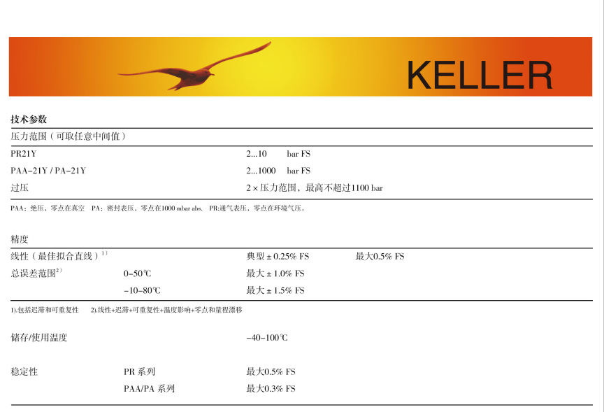 PA-21Y KELLER壓力傳感器產(chǎn)品描述:101廣州南創(chuàng)電子科技有限公司