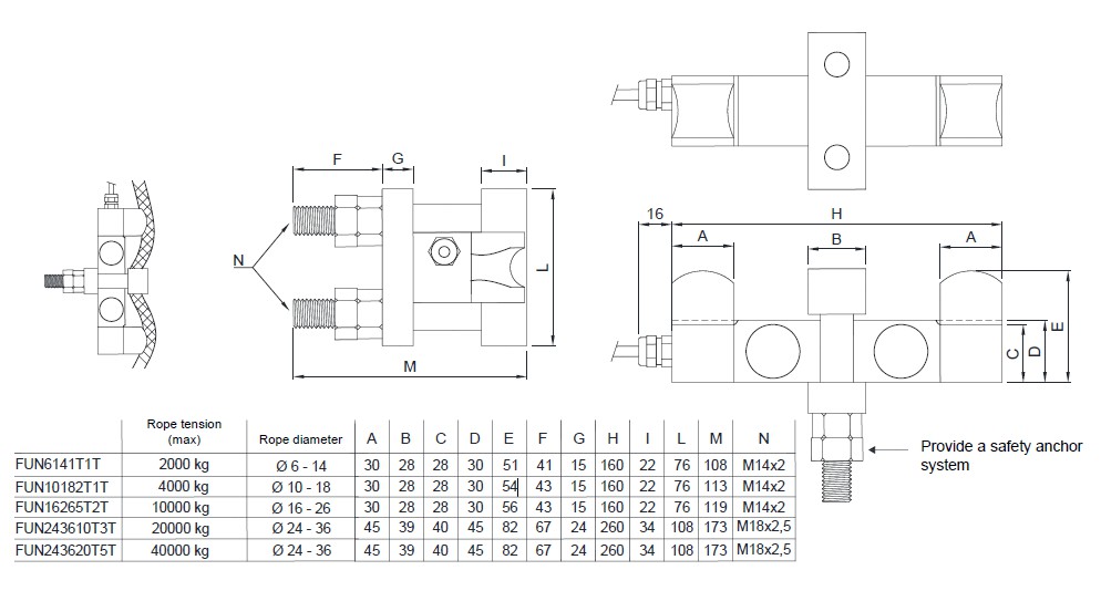 FUN-2000Kg電纜張力傳感器 FUN系列傳感器(2000~40000)Kg