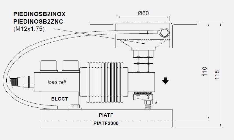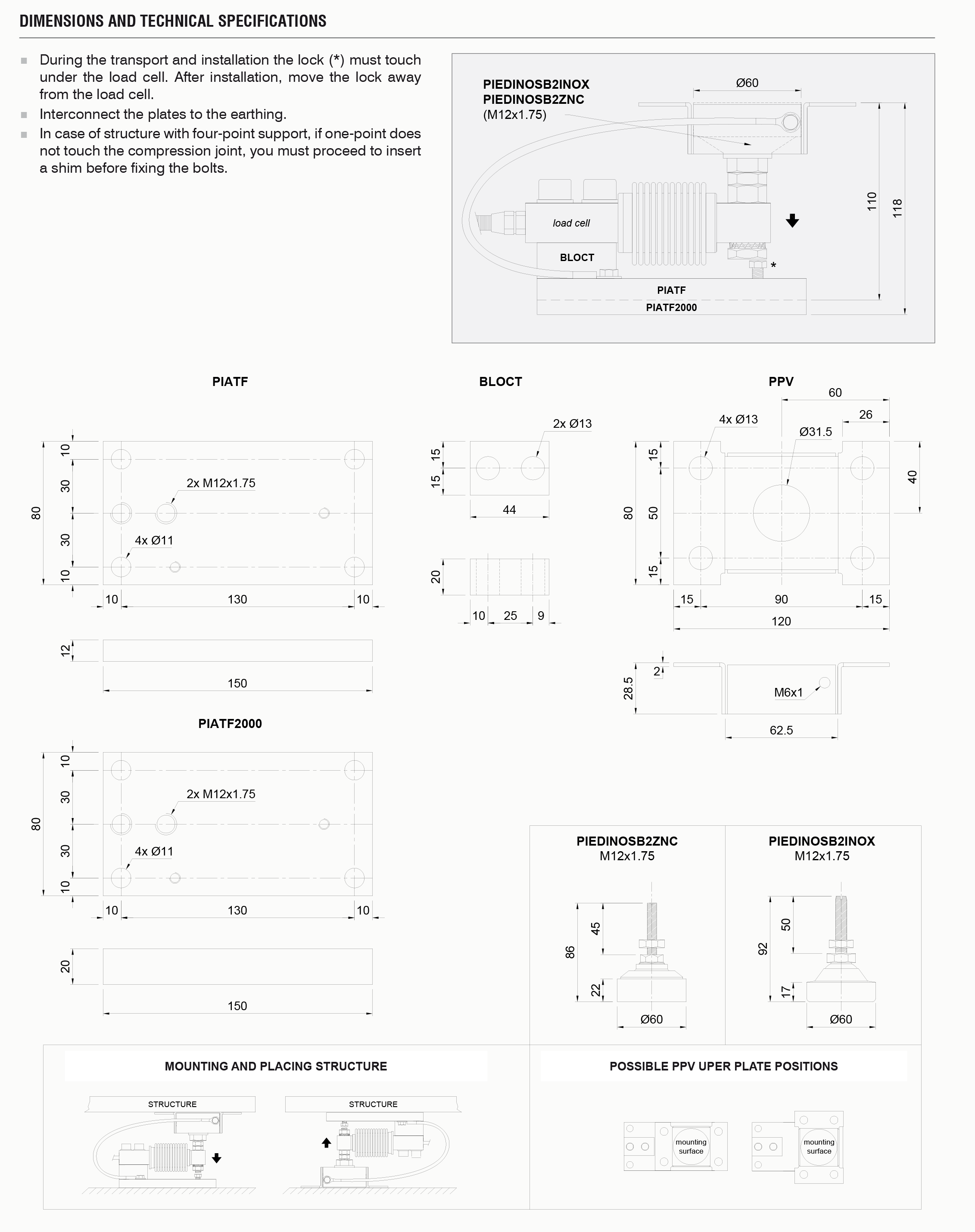 TF/PV/2000:(max 1000 kg) stainless steel foot
