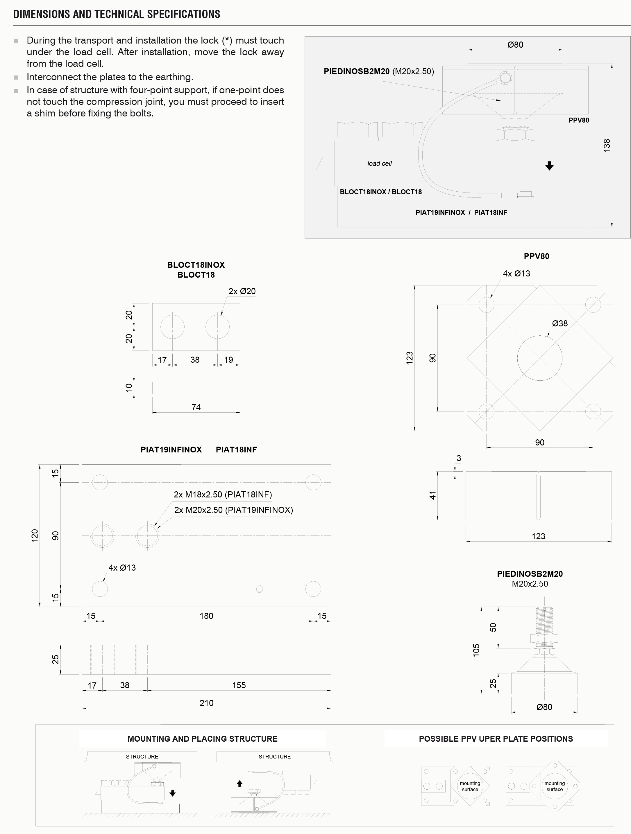 安裝套件,用于滾筒,平臺,水箱,料斗等;配有不銹鋼自動定心腳,高度可調,可抵抗側向力和防傾斜,以補償支撐板的不對中。最大靜載荷5000公斤。