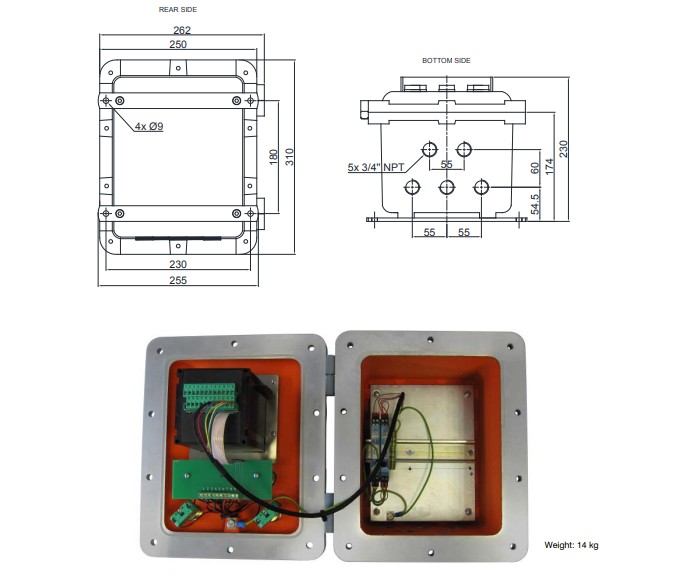 防爆箱,已通過(guò)ATEX II 2(1)GD認(rèn)證,配有耐熱透明鋼化玻璃窗和5個(gè)外部按鈕,其功能與W200鍵盤相同yMV廣州南創(chuàng)電子科技有限公司