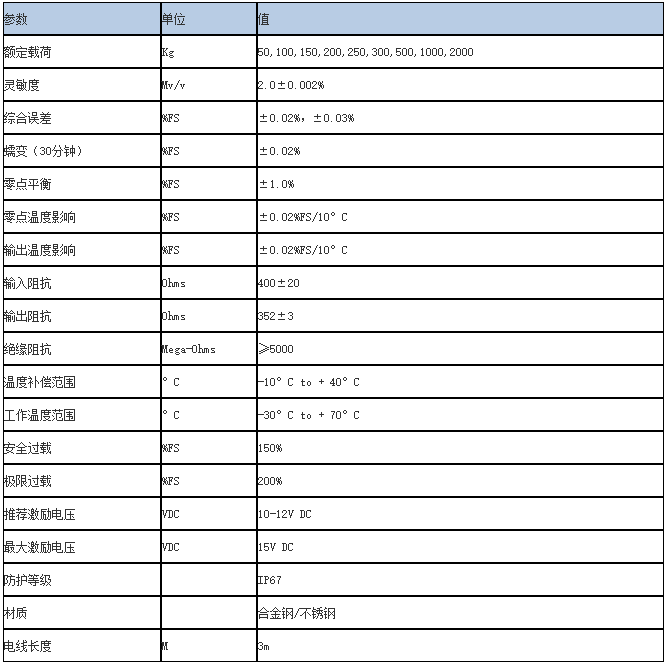 稱重傳感器產品參數:WW1廣州南創電子科技有限公司
