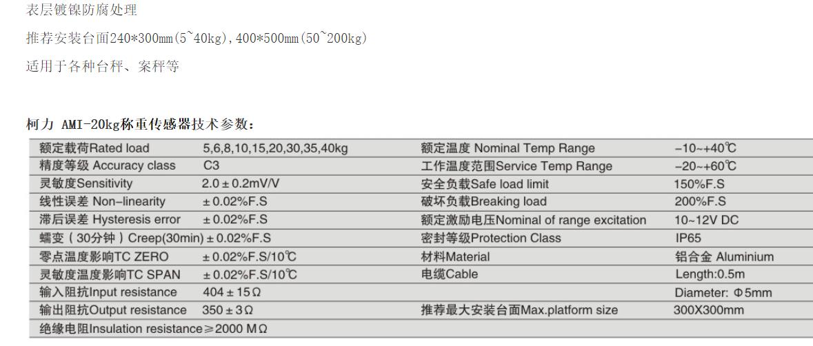 柯力 AMI-150kg稱重傳感器型號類別技術參數選型安裝等資料信息,如果有關