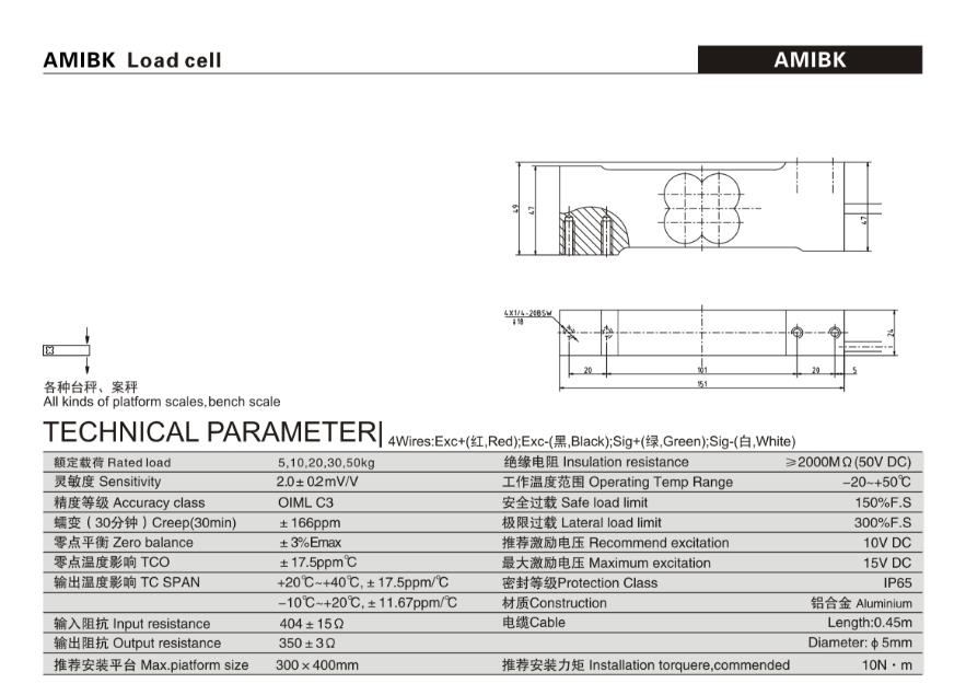 kaS廣州南創(chuàng)電子科技有限公司 kaS廣州南創(chuàng)電子科技有限公司寧波柯力稱重傳感器AMIBK-50kg產(chǎn)品技術(shù)參數(shù):kaS廣州南創(chuàng)電子科技有限公司