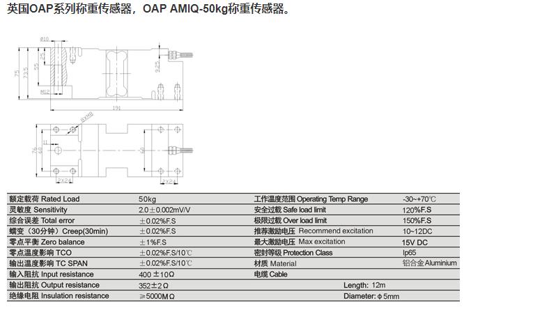寧波柯力稱重傳感器AMIQ-50kg產品技術參數:IrK廣州南創電子科技有限公司