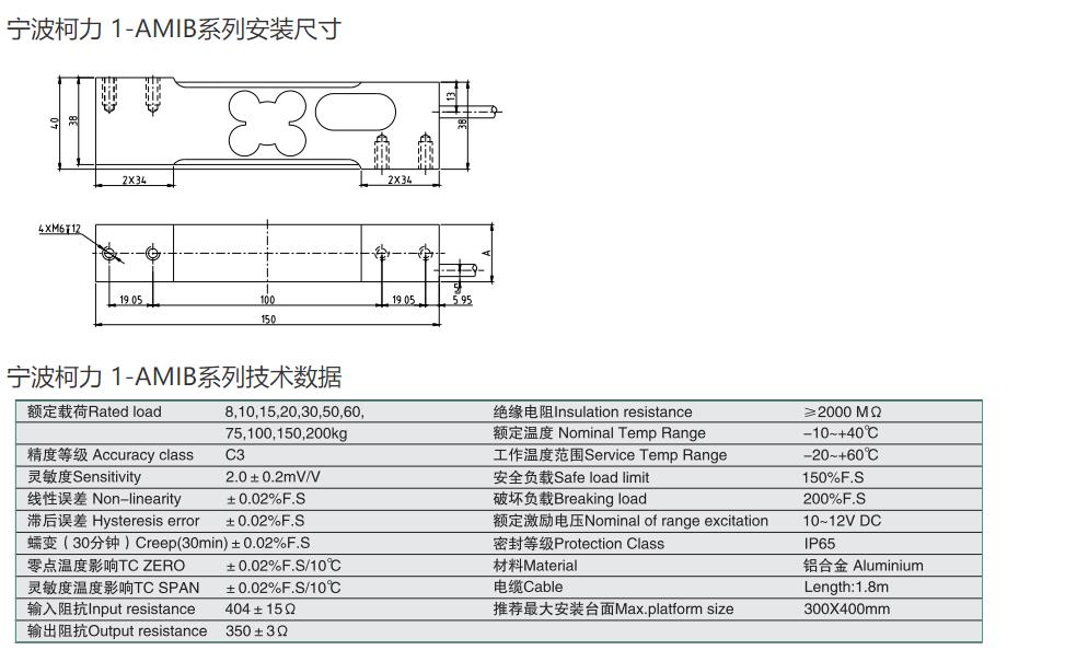 柯力 AMIB-100kg稱重傳感器型號類別技術參數選型安裝等資料信息,如果有關