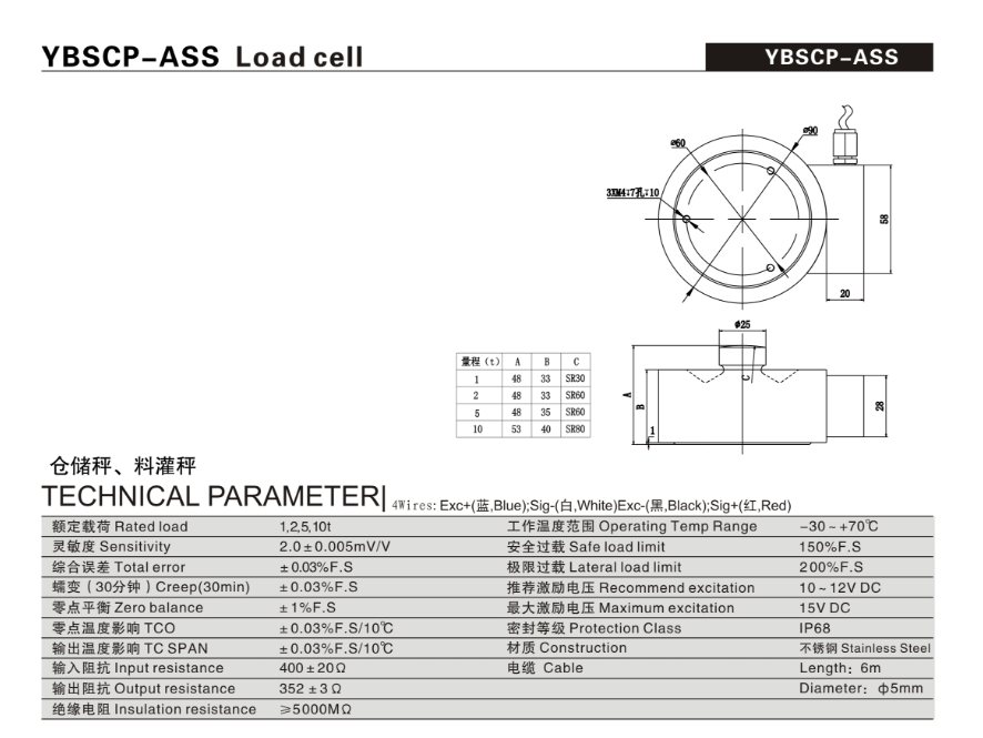 柯力 YBSCP-ASS-1t稱重傳感器型號類別技術參數選型安裝等資料信息,如果有關