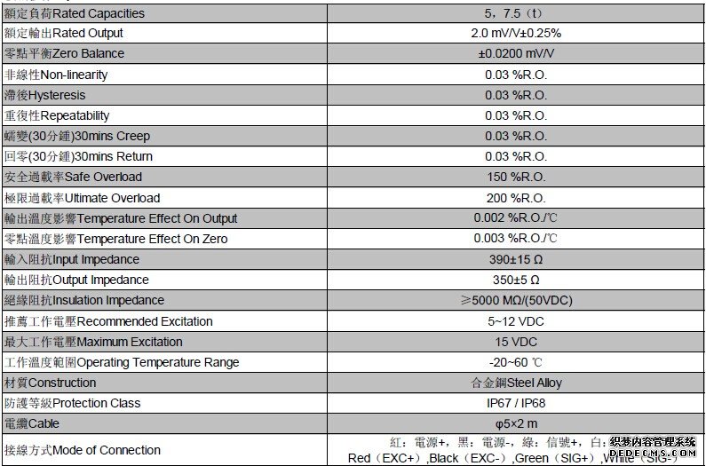 臺灣Mavin稱重傳感器NS3-7.5T又有良好的耐候防腐性能。彈性體的主要要求就是能夠精確傳遞受力信息并保持在相同受力時的形變一致性和完全復位性。