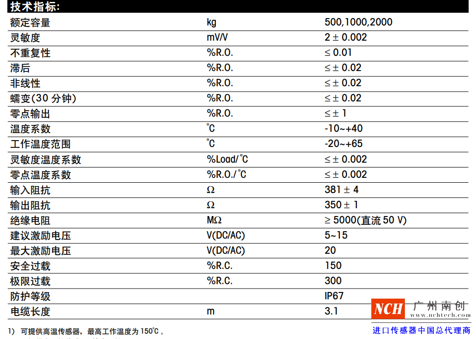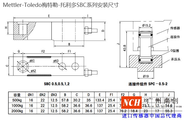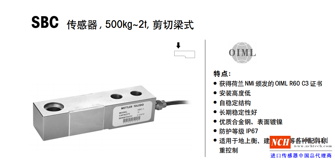 托利多SBC稱重傳感器技術指標:nrE廣州南創電子科技有限公司