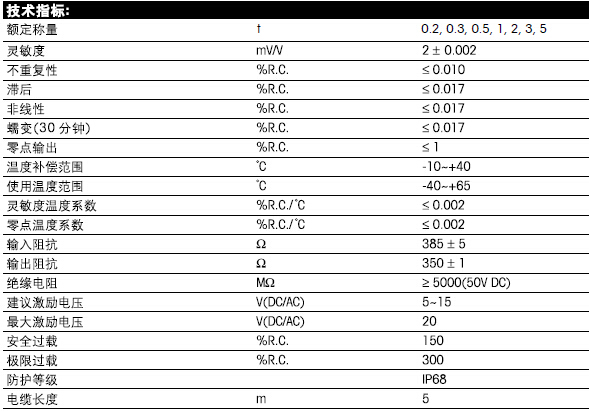 梅特勒托利多稱重傳感器TSH-200kg 產品參數:7wb廣州南創電子科技有限公司
