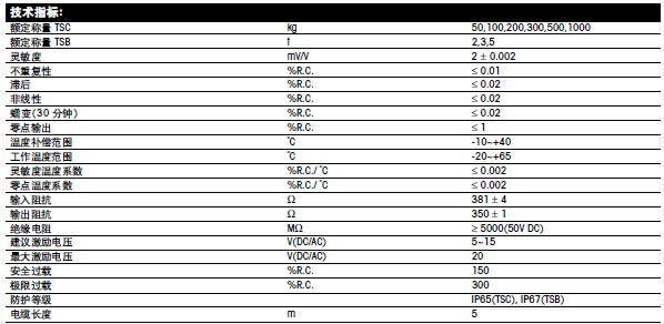 梅特勒托利多稱重傳感器TSC-2000kg產品參數:Plu廣州南創電子科技有限公司
