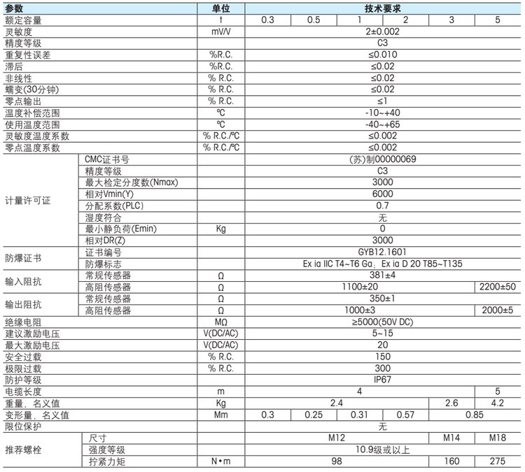 PRx廣州南創電子科技有限公司METTLER TOLEDO稱重傳感器SBT-0.3t技術參數:PRx廣州南創電子科技有限公司