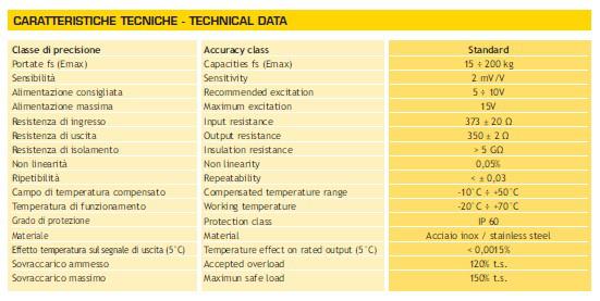 意大利N.B.C Mod EC稱重傳感器技術參數: