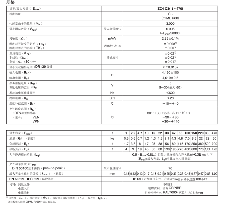 類型/最大容量( E max ) ZC4 C3/1t ~ 470t