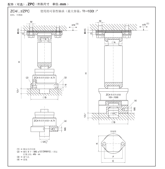 美國NCH稱重傳感器ZC4-100T尺寸圖:kZR廣州南創電子科技有限公司