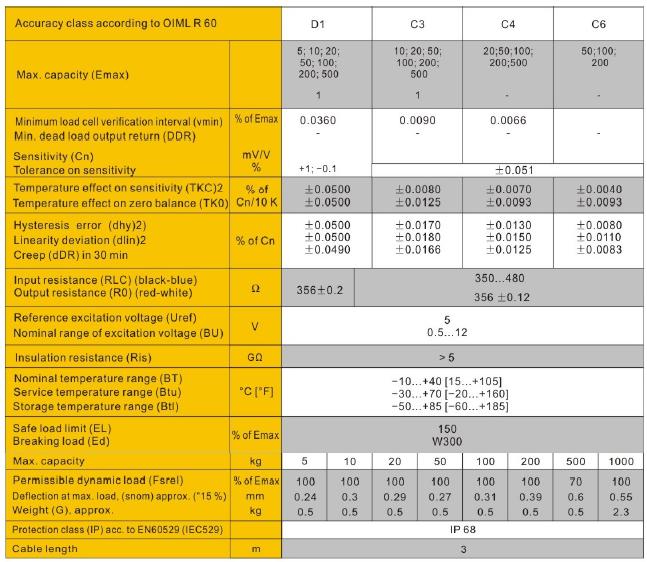 最大安全負載< ± 0.025 %FS < ± 0,022 %FS < ± 0.018 % FS