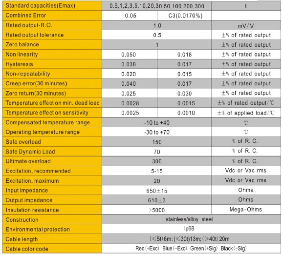美國NCH稱重傳感器ZC3-500kg參數:DjF廣州南創電子科技有限公司