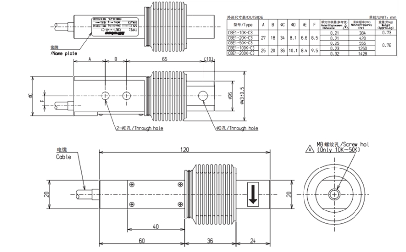 CBE1-5K稱重傳感器Minebea尺寸圖:JOt廣州南創(chuàng)電子科技有限公司