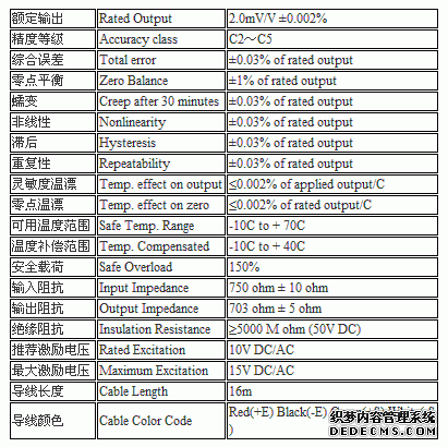 美國OAP BTA稱重傳感器產品參數圖:YSR廣州南創電子科技有限公司