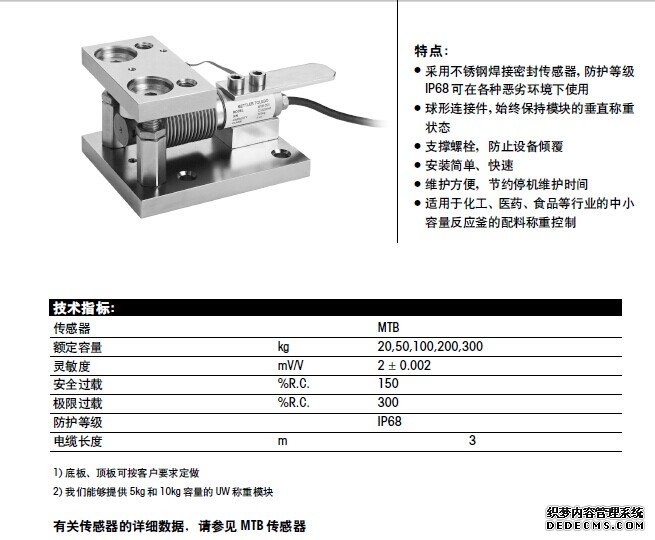 梅特勒托利多UW-20kg稱重模塊HwI廣州南創電子科技有限公司