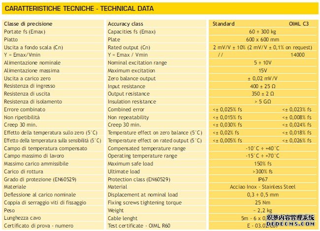 意大利NBC Elettronica稱重傳感器部分型號介紹: