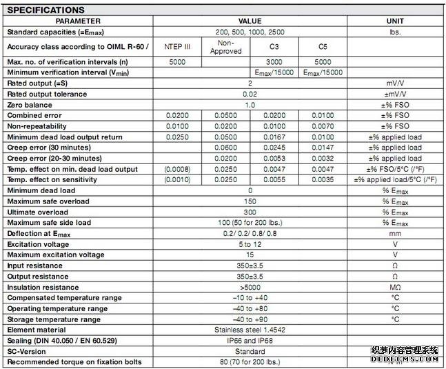 美國Vishay Revere 稱重傳感器特點(diǎn):