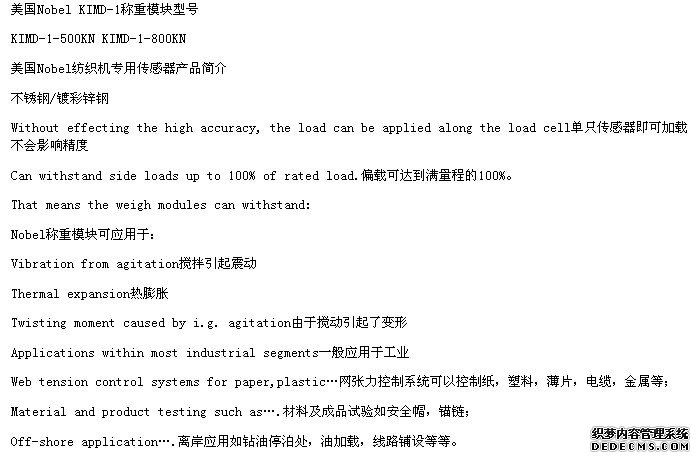 美國Nobel KIMD-M-500KN稱重傳感器模塊參數: