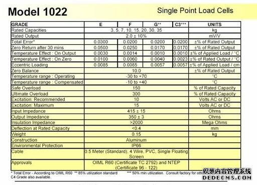 美國Tedea-Huntleigh稱重傳感器1022系列所有型號:iUI廣州南創電子科技有限公司