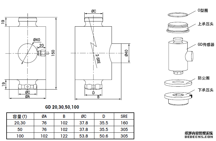 GD-100T 搖柱式稱重傳感器,容量100T,13M電纜