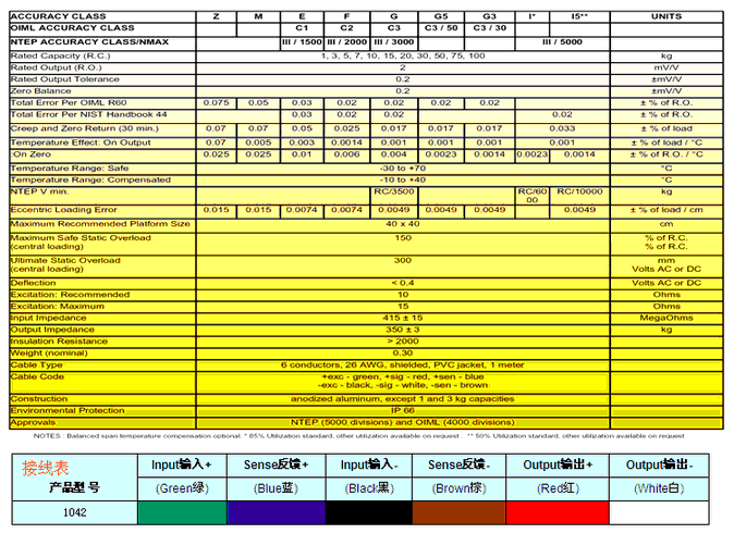 美國特迪亞tedea 1042稱重傳感器產品參數:yMn廣州南創電子科技有限公司