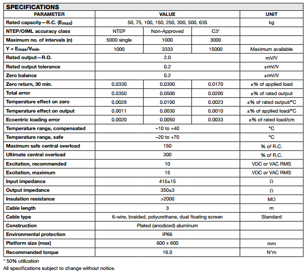 美國特迪亞Tedea 1260稱重傳感器產品參數:fn2廣州南創電子科技有限公司