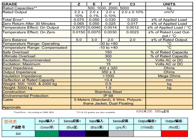 -美國Tedea 619稱重傳感器綜合精度:0.02%;                    4yX廣州南創電子科技有限公司